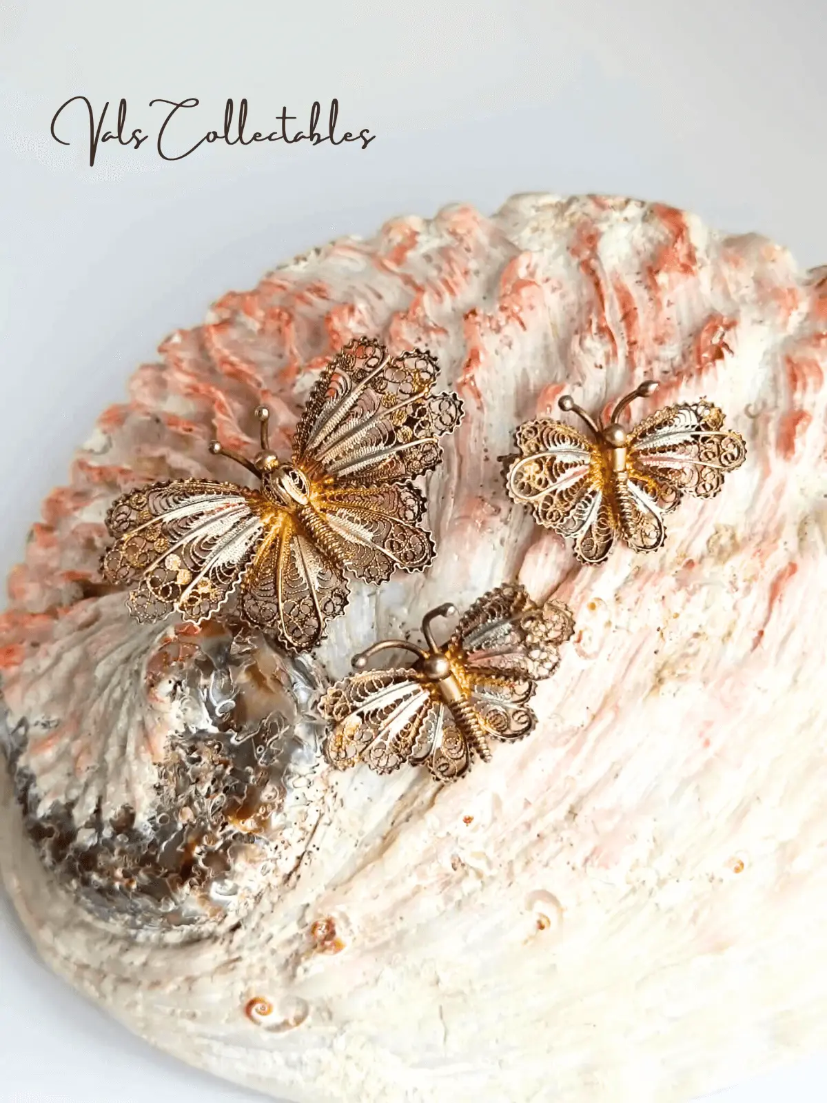Set 3 – Antique – 800 Silver Gilt – Filigree – Brooches