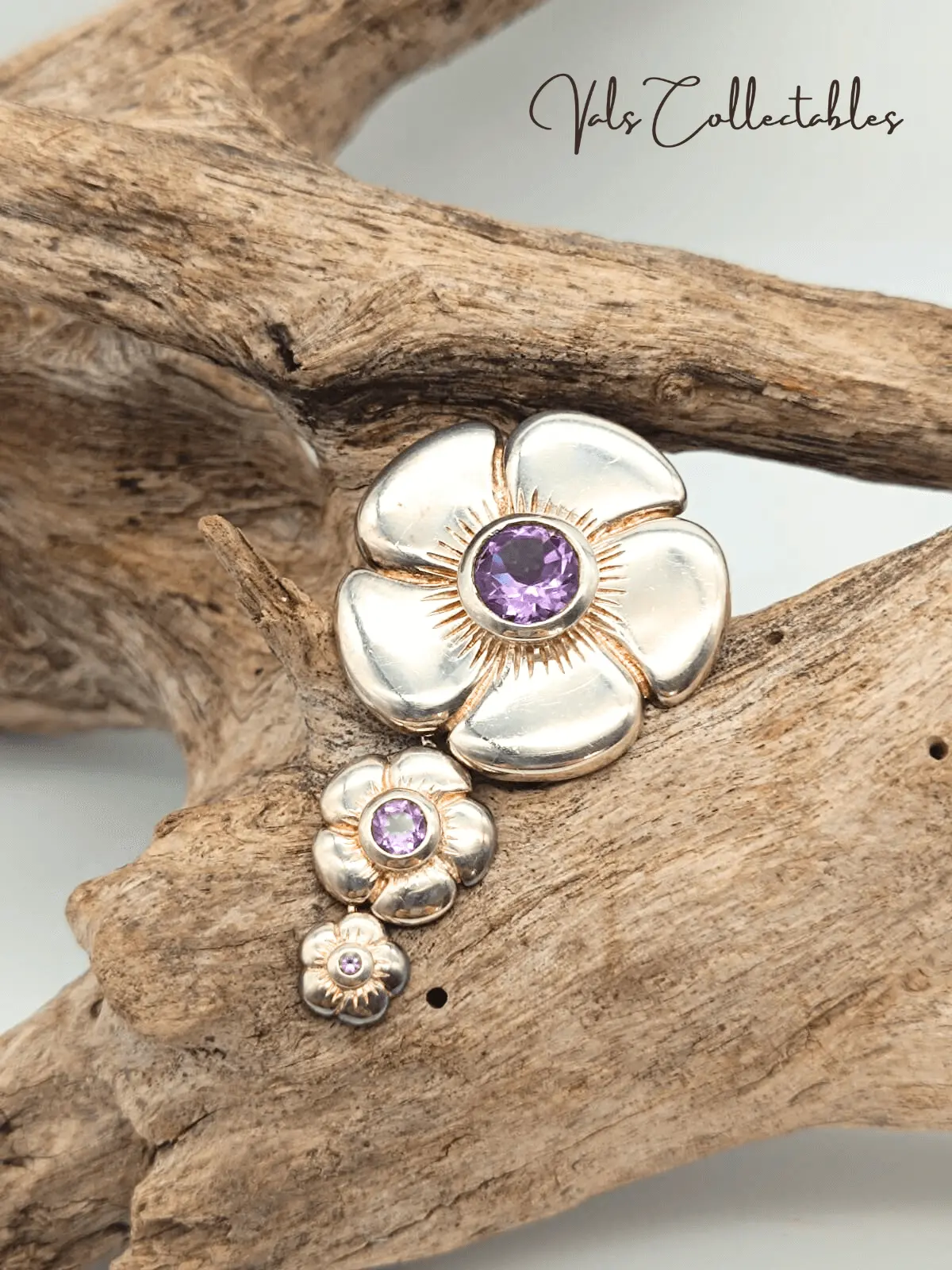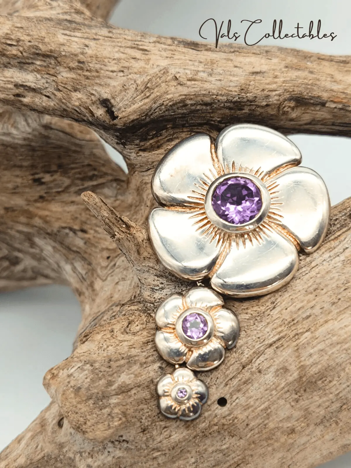 Vintage Ylang Ylang – 925 Silver Pendant set with Amethysts