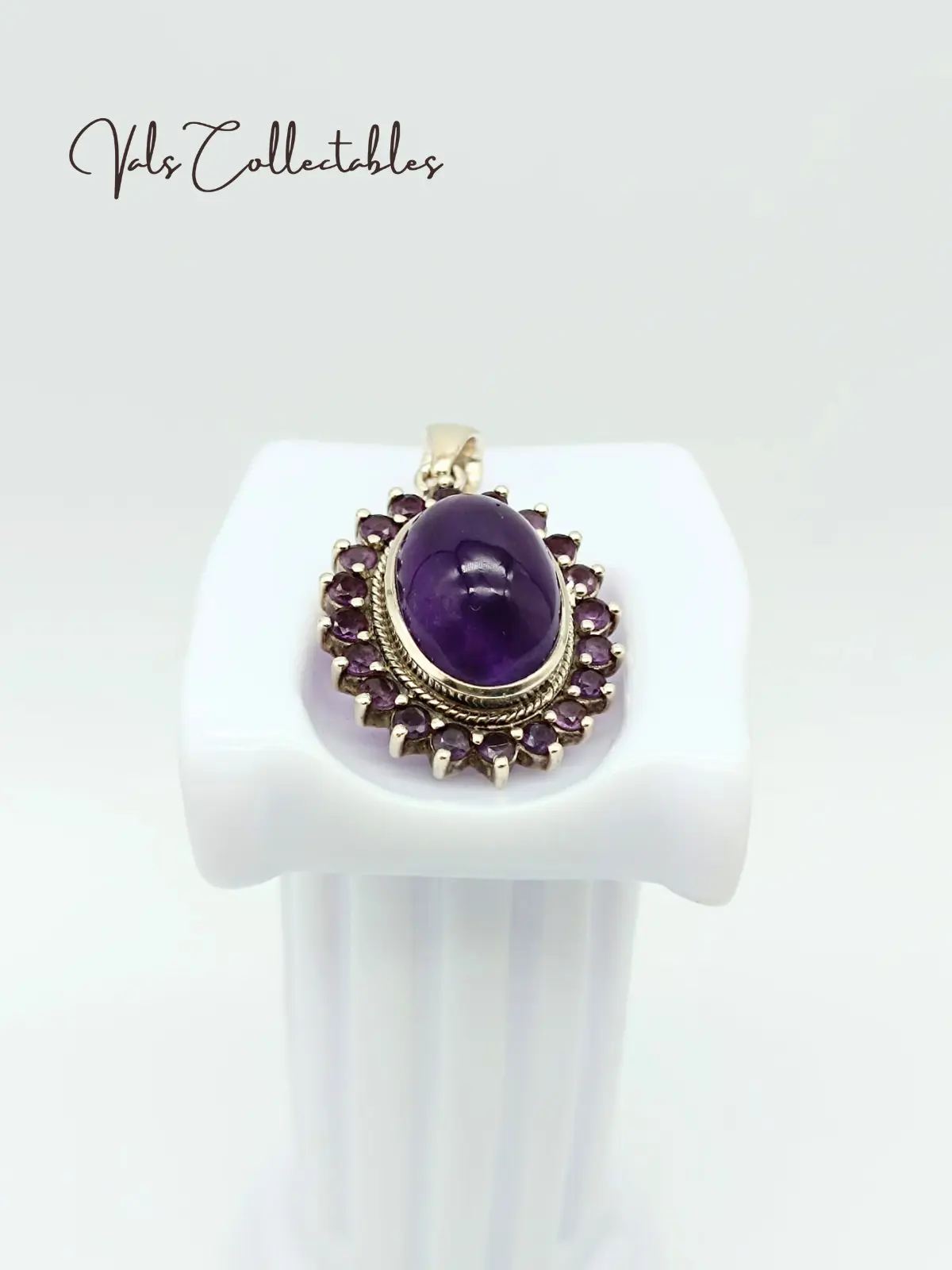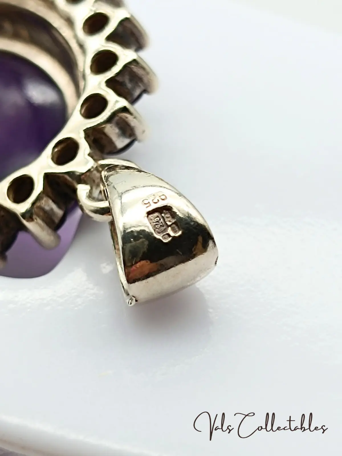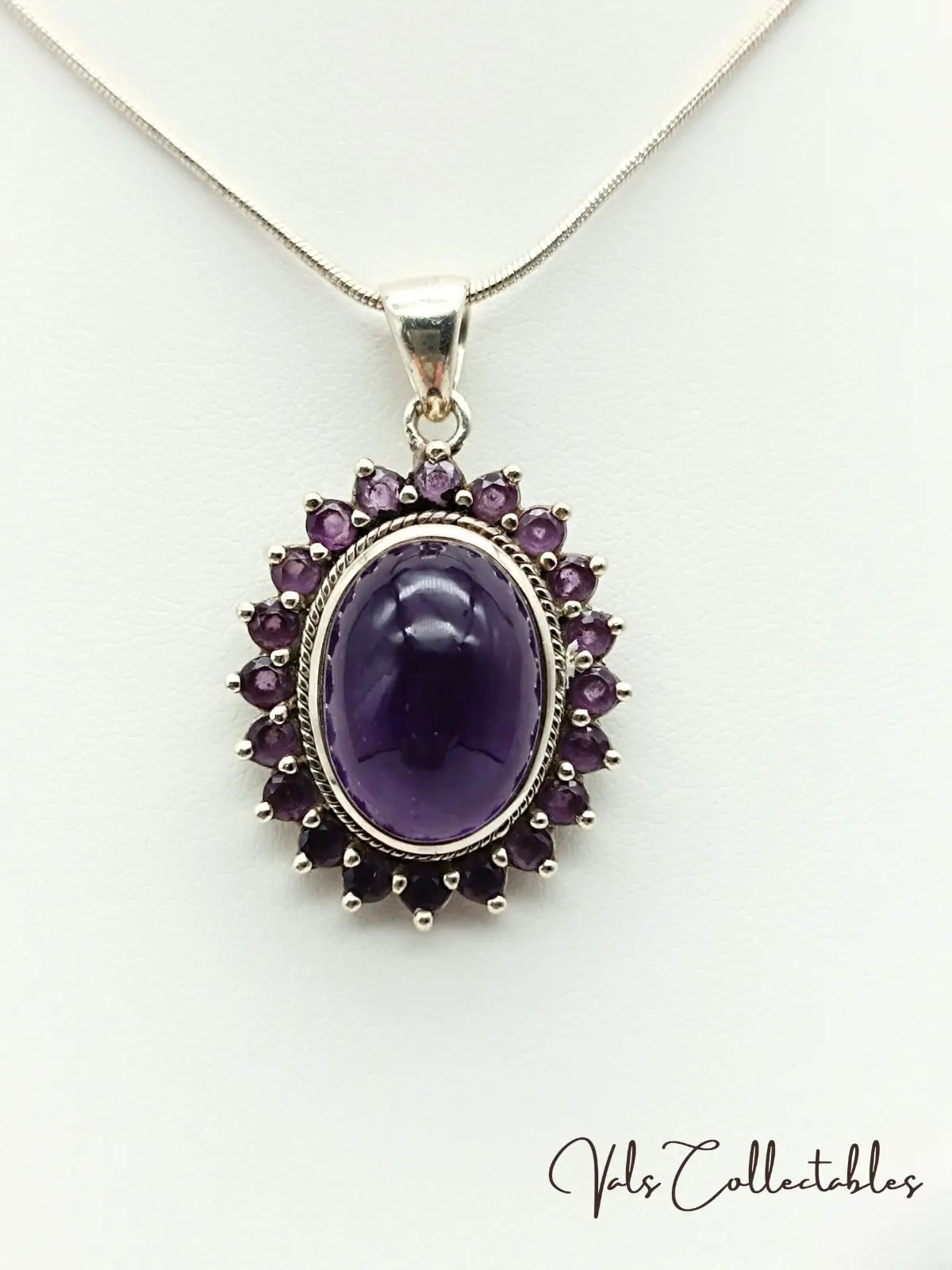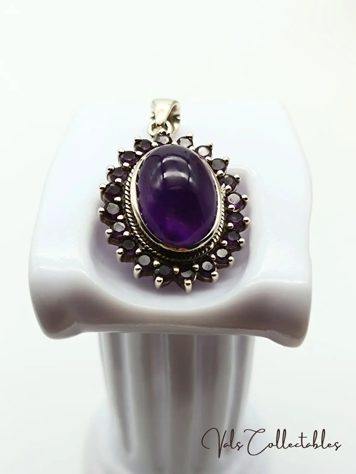 Hallmarked silver and amethyst – classic, cluster – halo pendant.