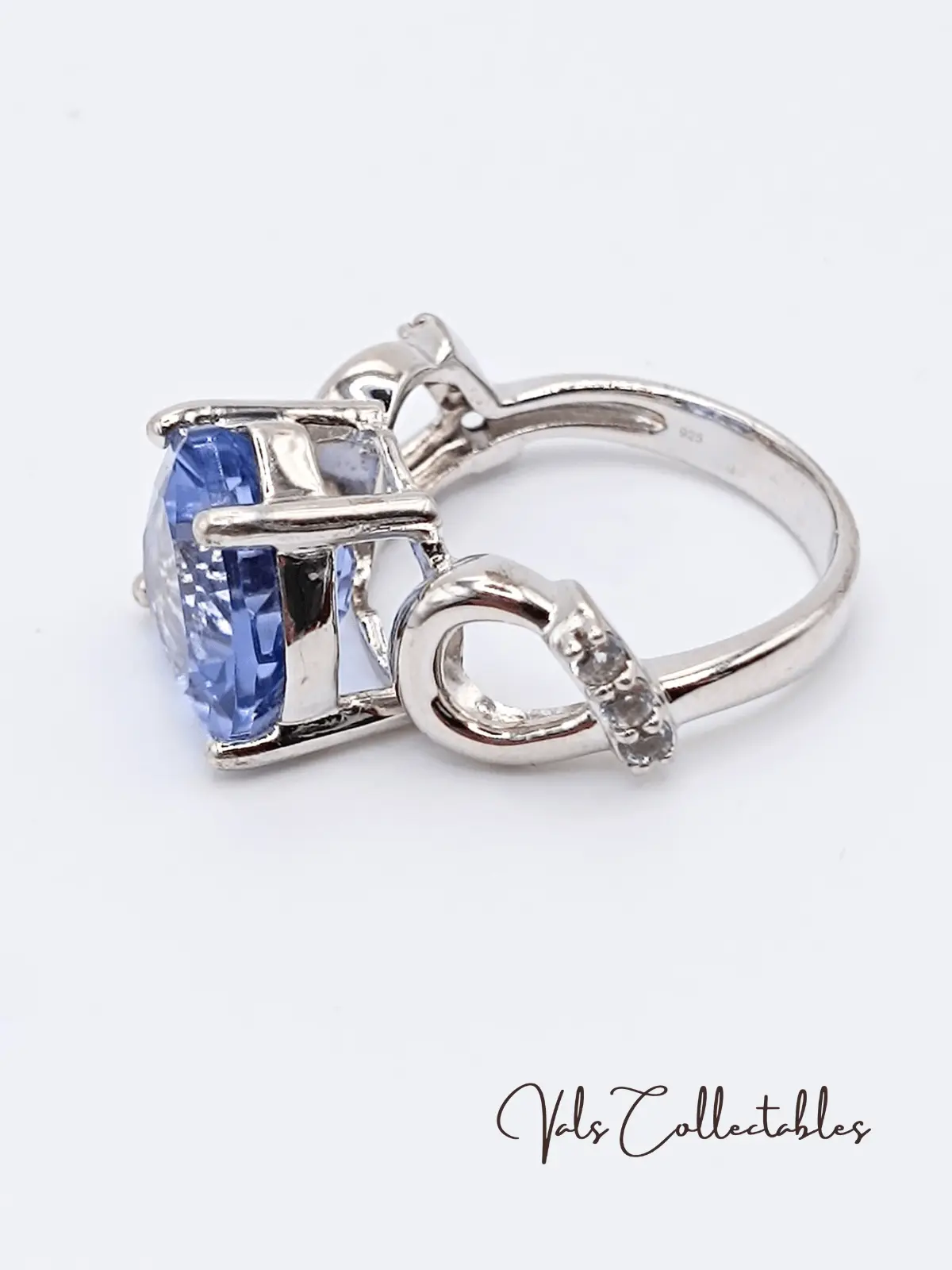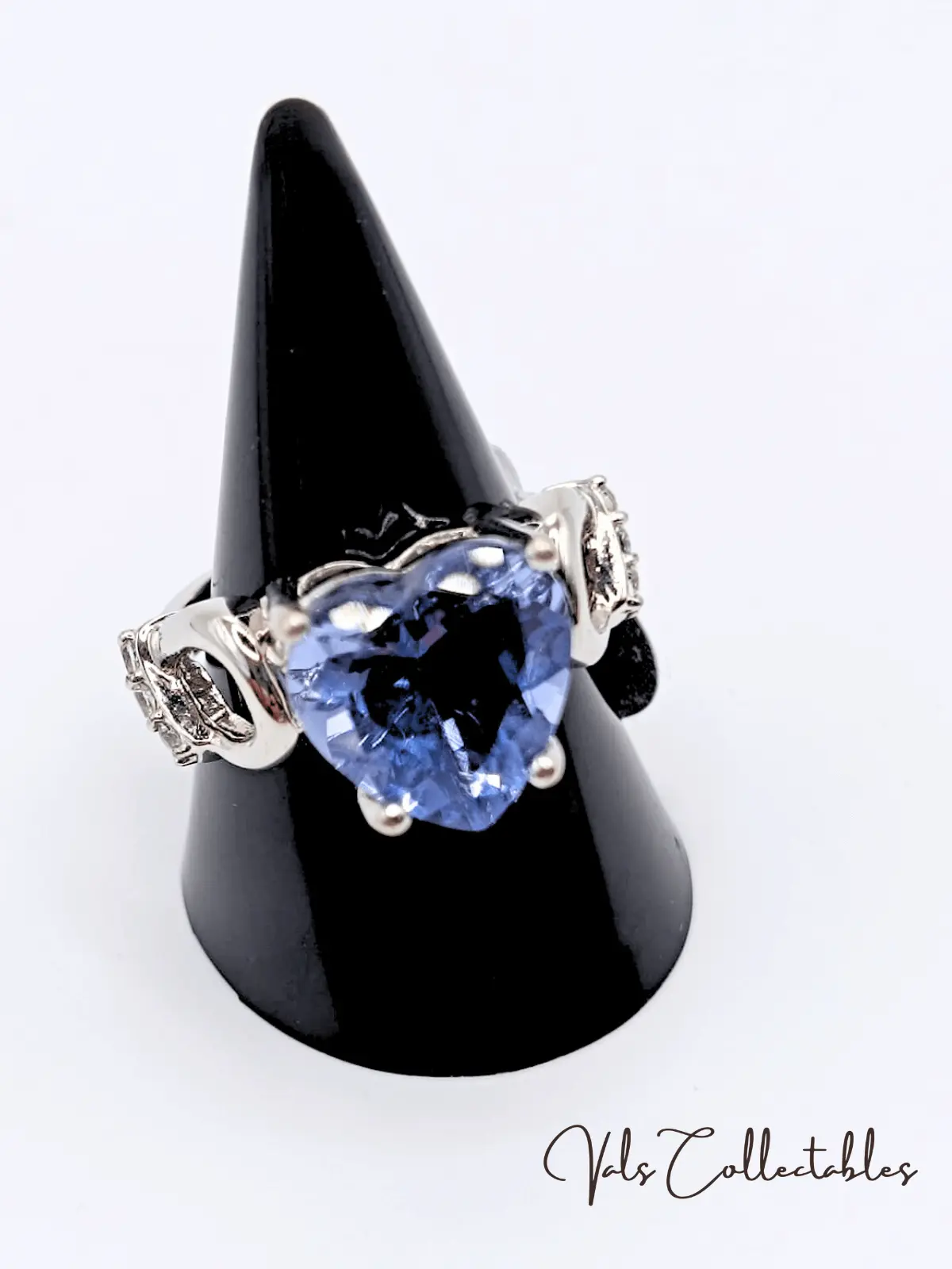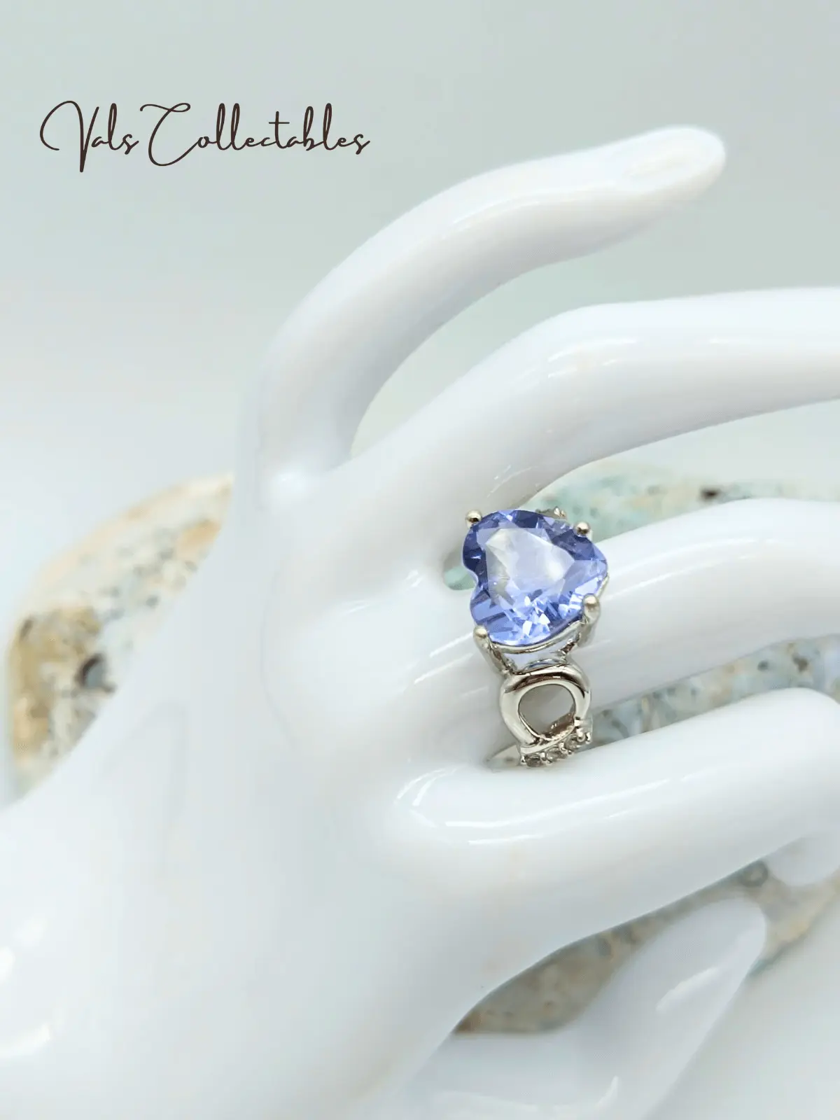 925 Sterling Silver Ring Set with huge Blue Topaz Heart