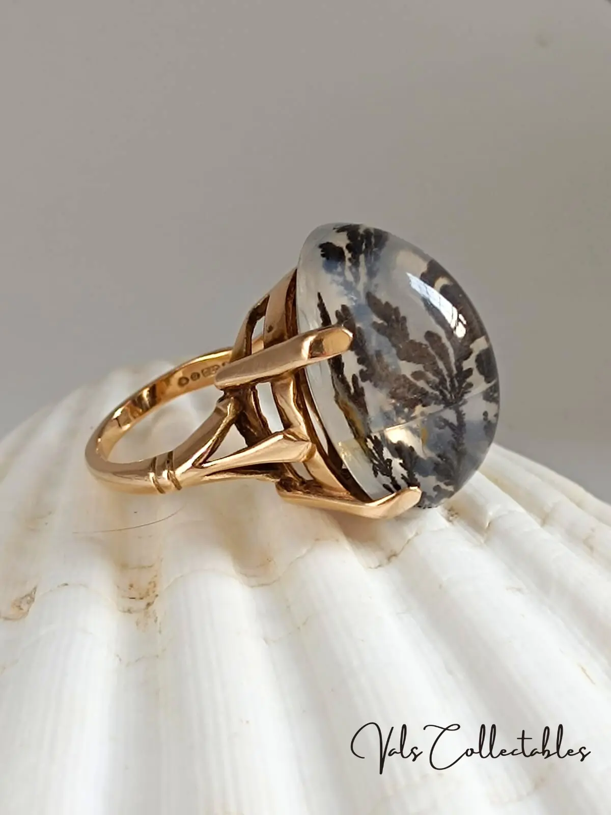 9ct Gold statement ring set with fabulous huge Scenic Dendritic Agate Cabochon.