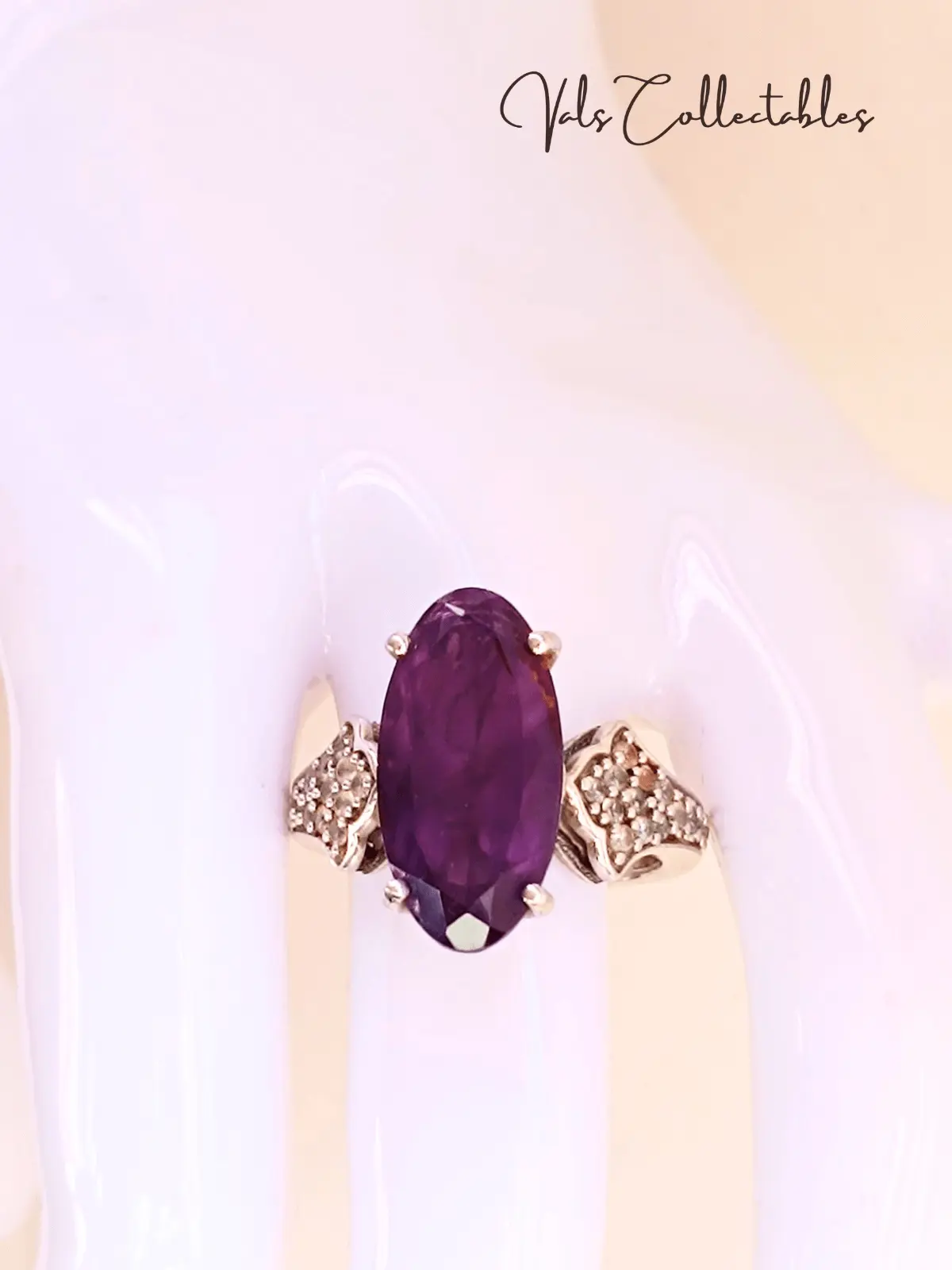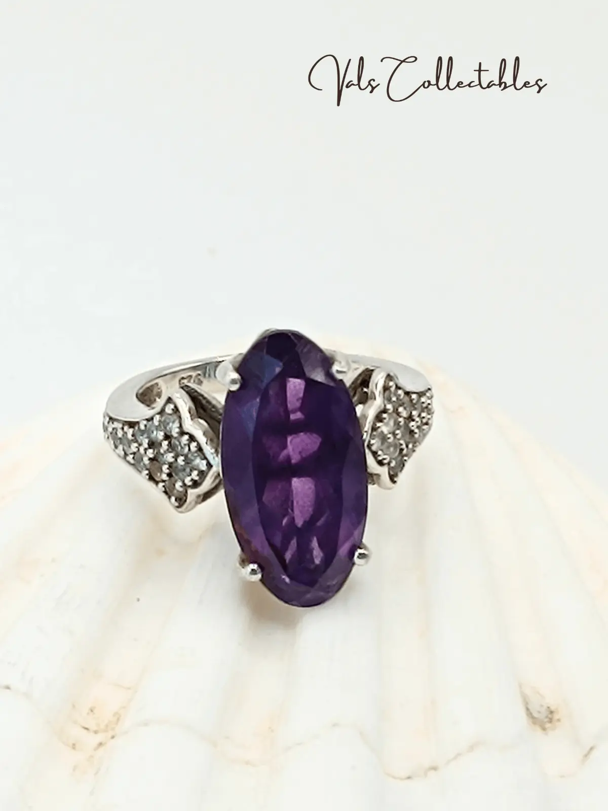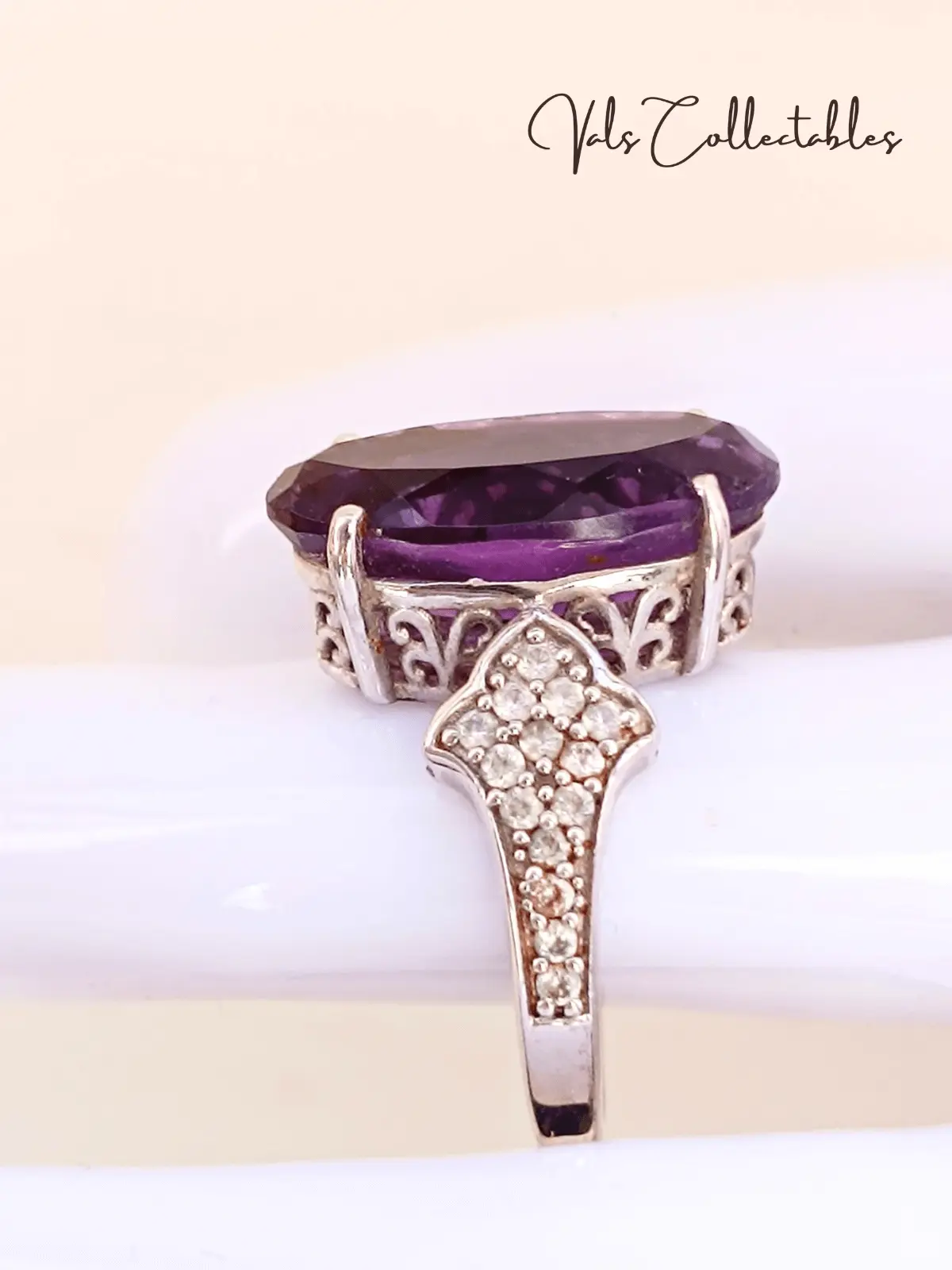 Art Deco Style 925 Silver and Natural Amethyst Cocktail Ring