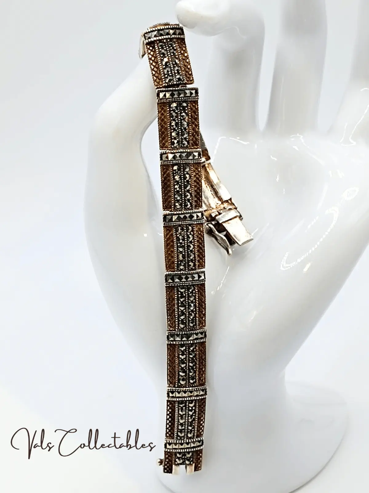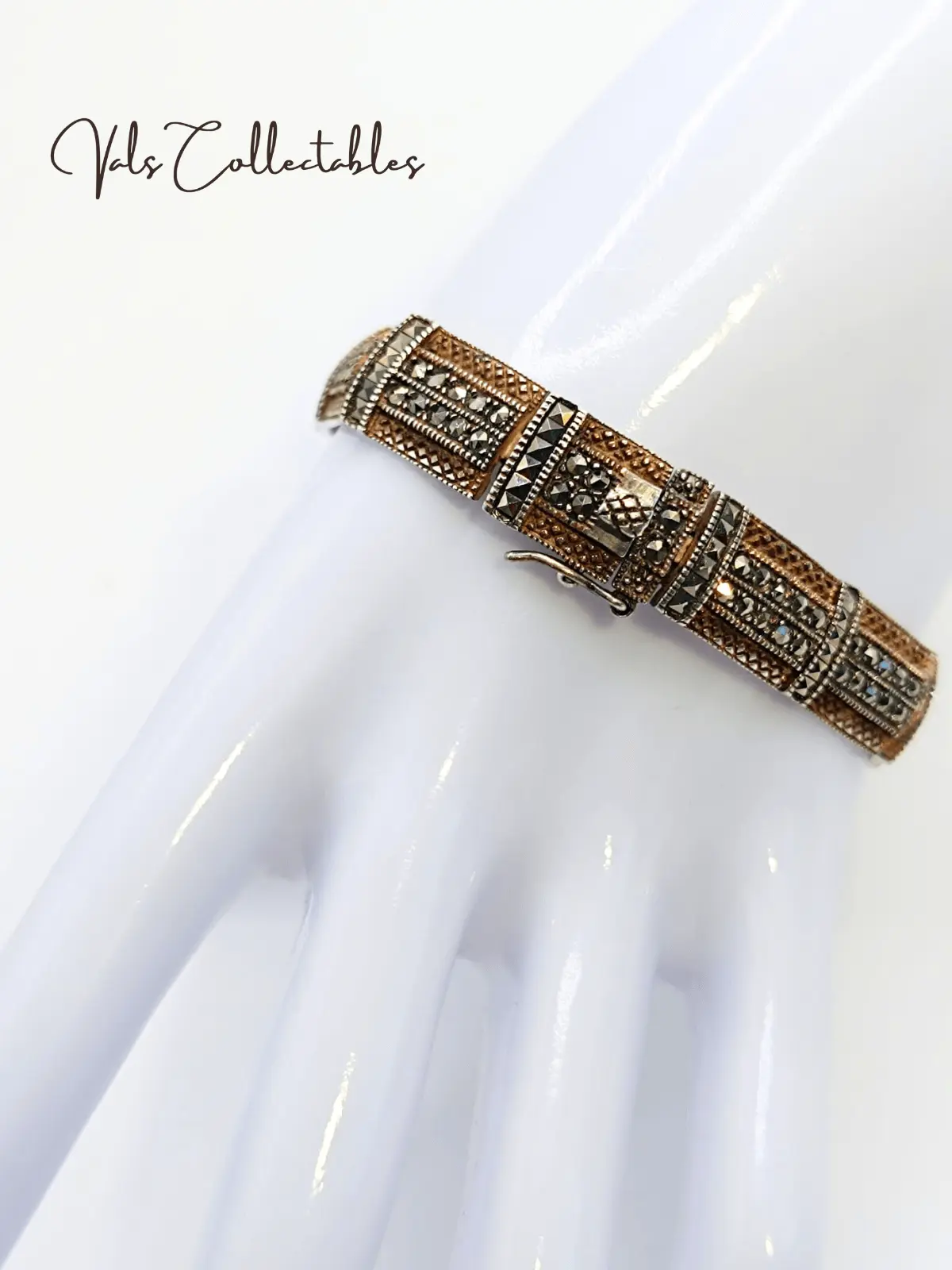 925 Vintage – Gold plated silver and Marcasite bracelet