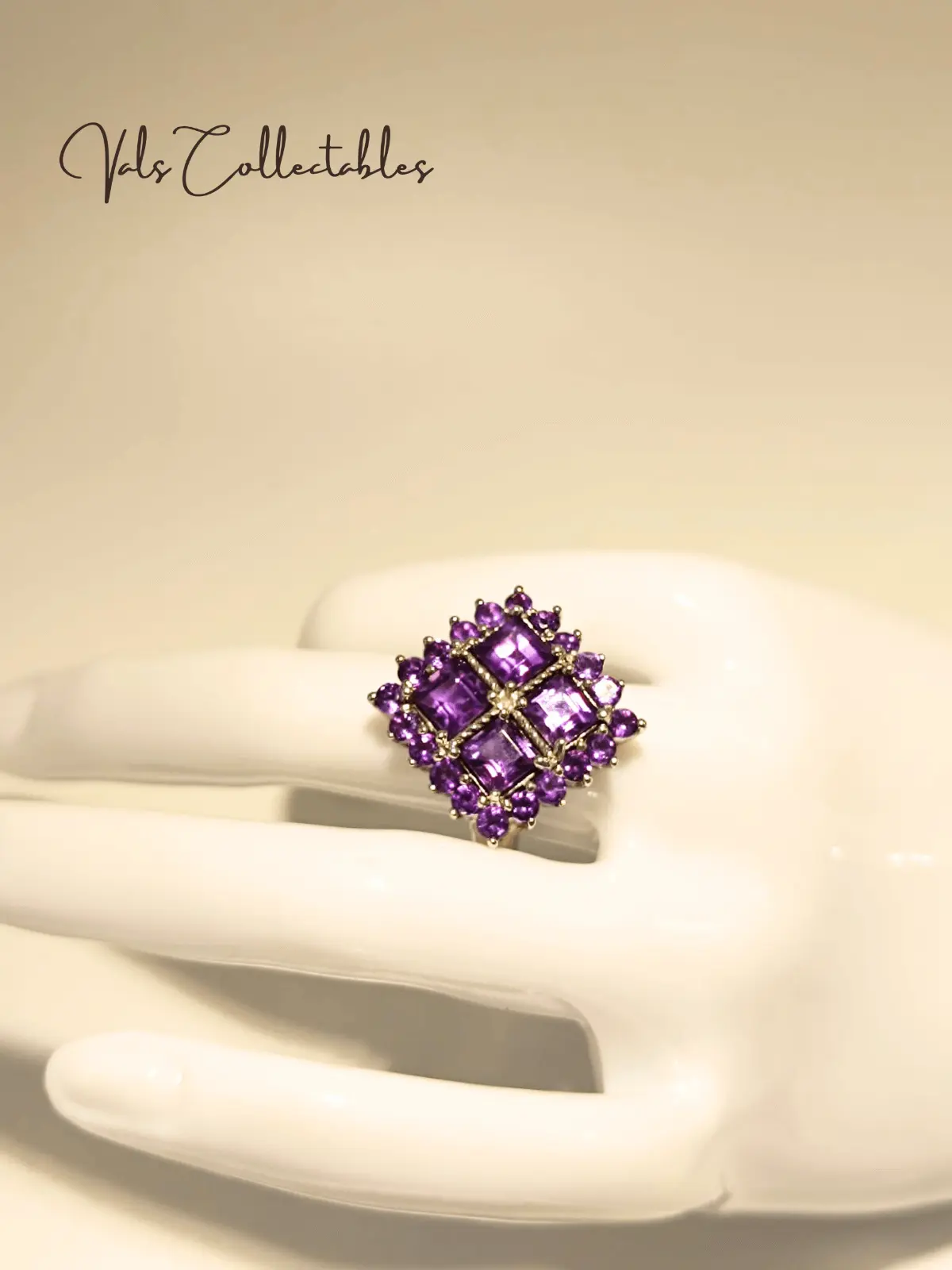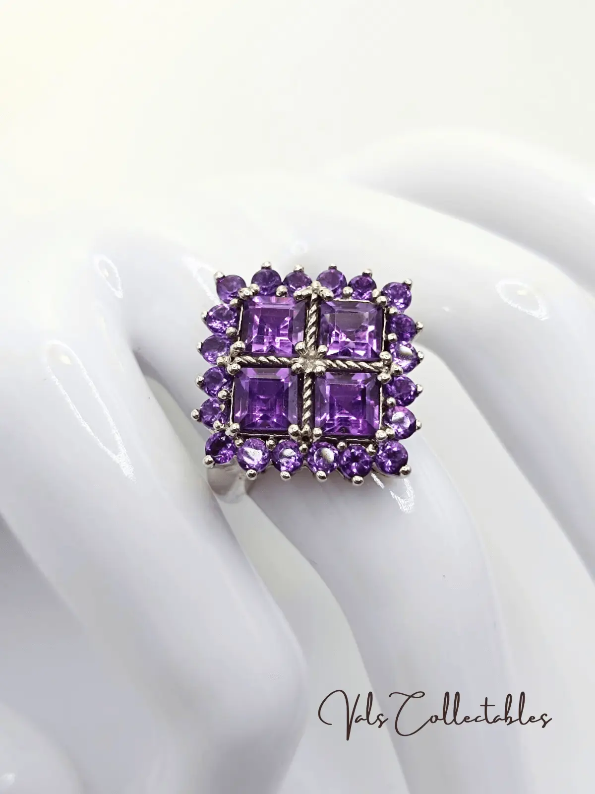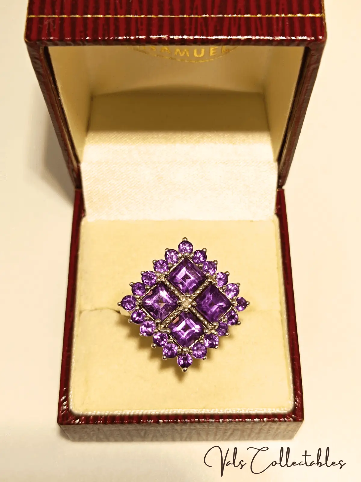 925 Silver & Natural Amethyst Statement Ring – Size “O”. New in box. £35
