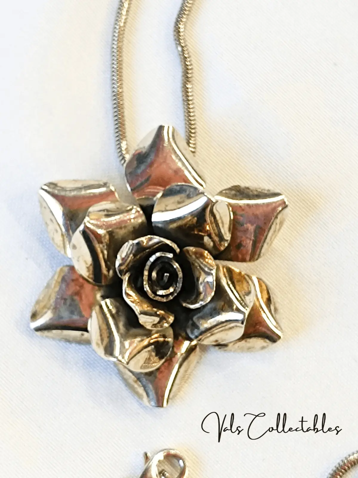 925 Silver Rose Pendant on 16′ 925 Silver Chain.