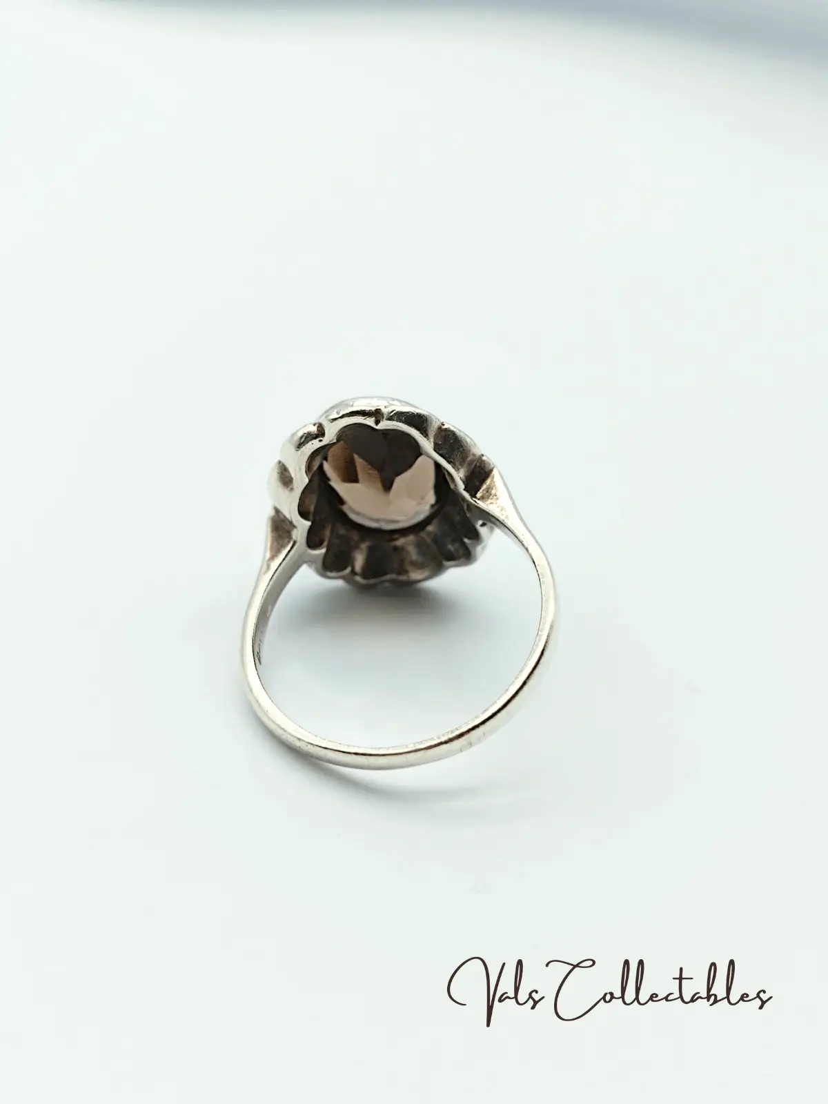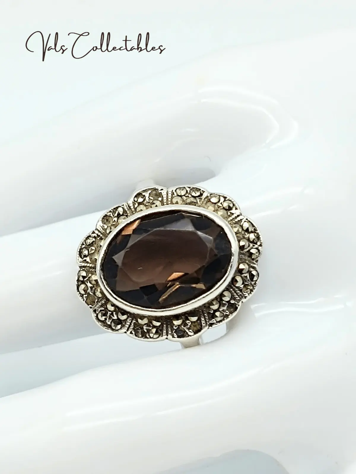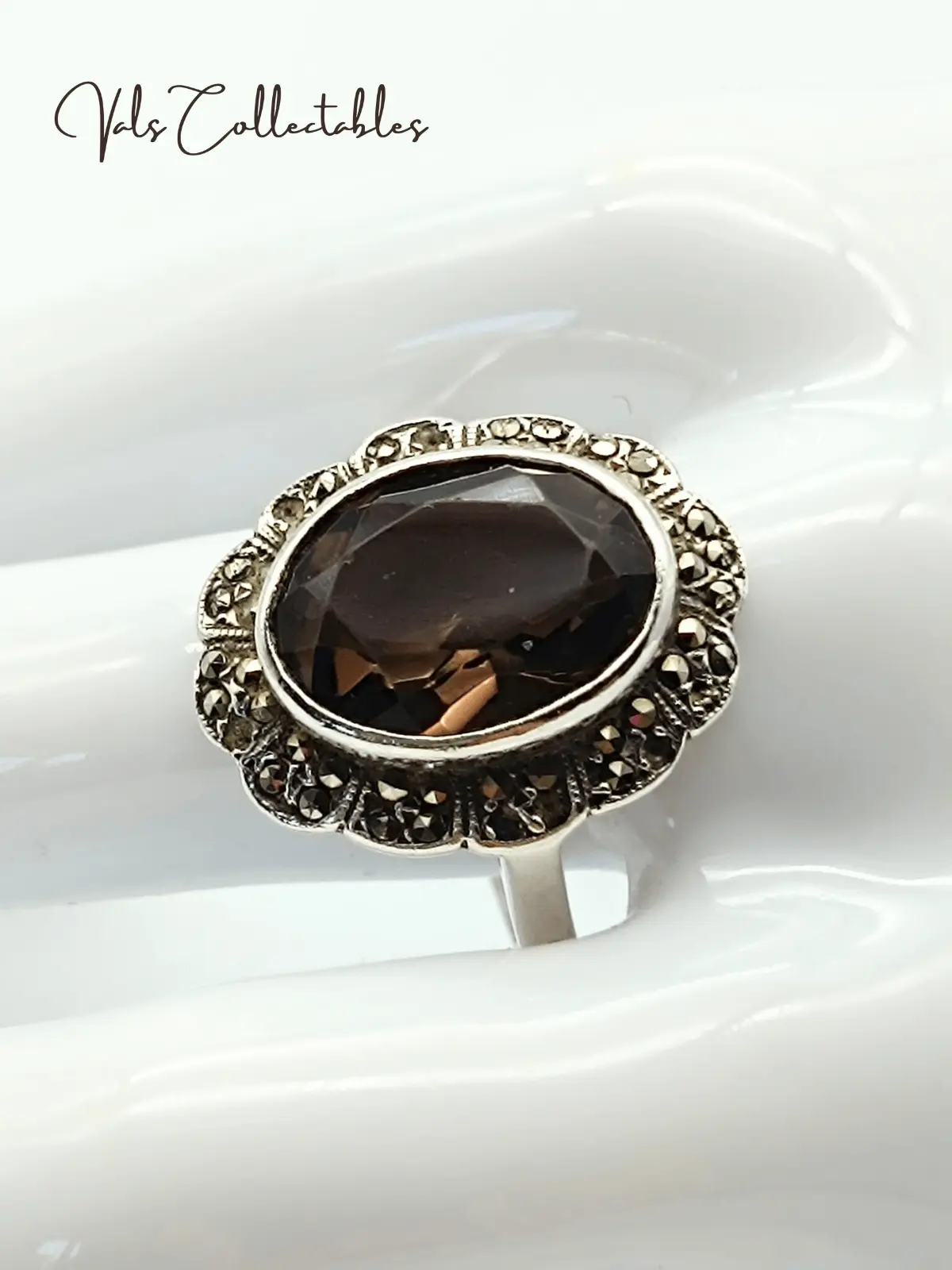 Vintage Art Deco inspired Bezel setting pave Smoky Quartz accent marcasite Cocktail Ring